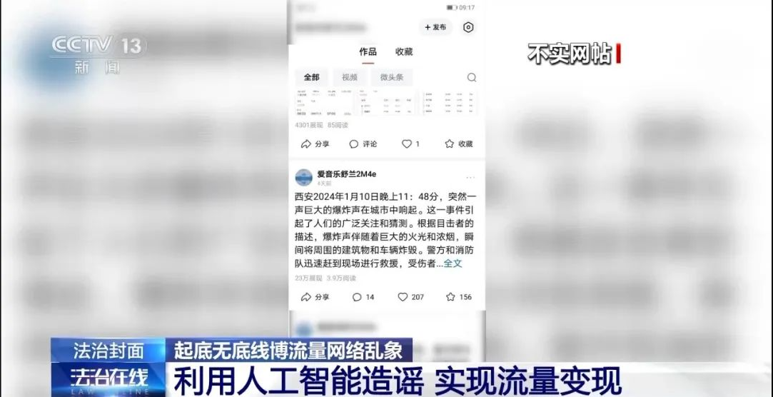不管是利用AI編造駭人聽聞的虛假消息,還是直播對罵,目的都是賺取平臺流量補貼,實現(xiàn)流量變現(xiàn)。法學(xué)專家表示,大量不實信息對普通網(wǎng)民來說,有時候很難直接判斷它是否為謠言,而平臺對于相關(guān)信息應(yīng)該盡到監(jiān)管責(zé)任。
